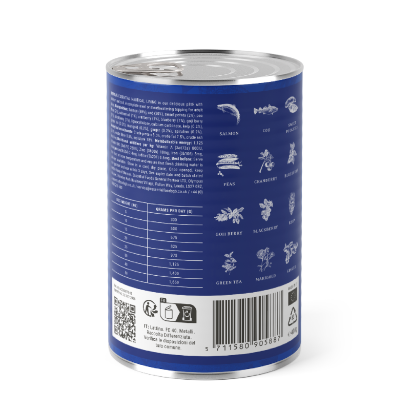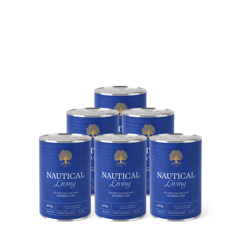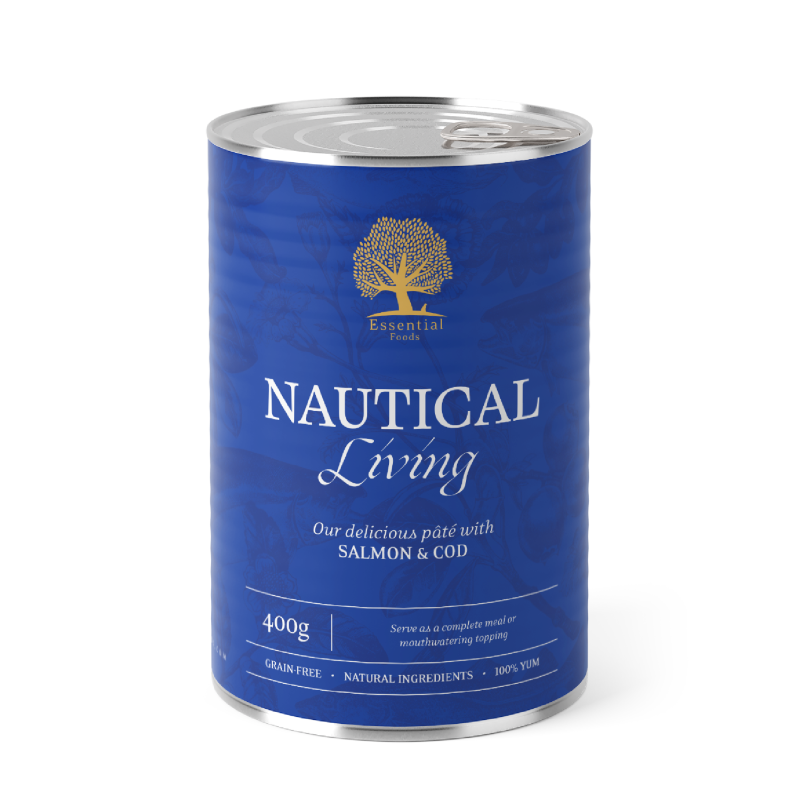 ESSENTIAL NAUTICAL LIVING, une délicieuse pâtée élaborée avec du saumon et de la morue.