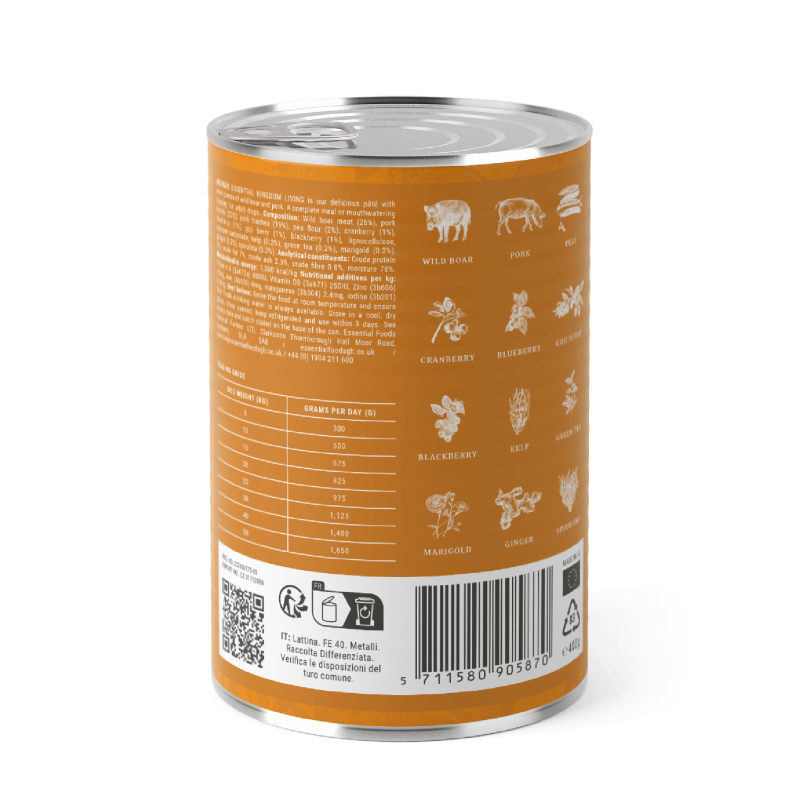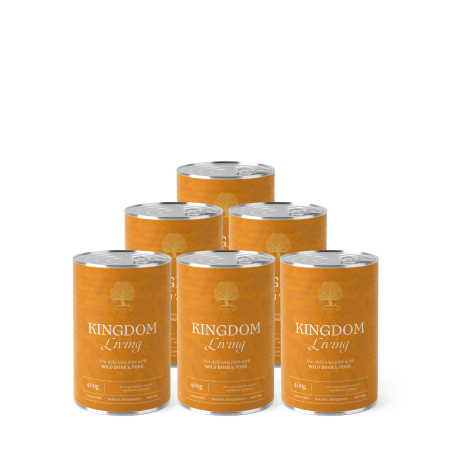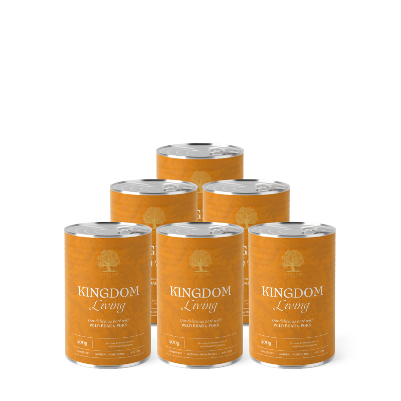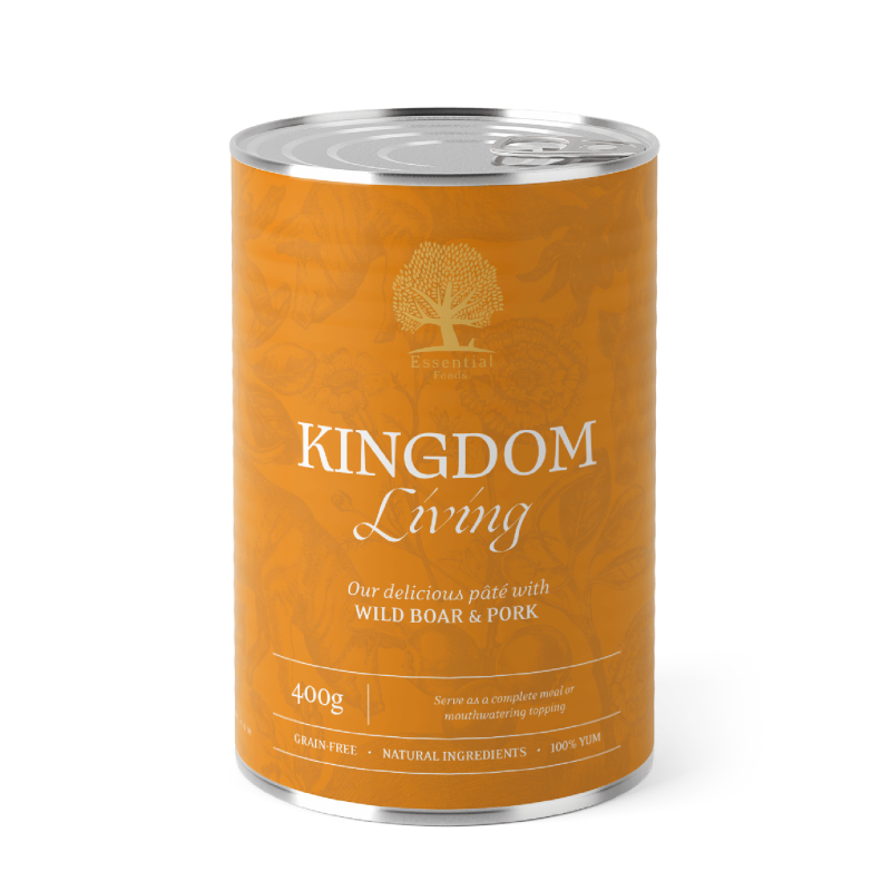 ESSENTIAL KINGDOM LIVING est notre délicieuse pâtée avec des morceaux de viande de sanglier et de porc.