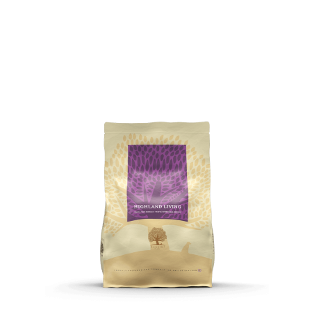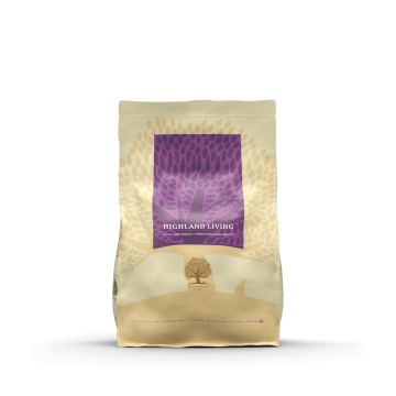 HIGHLAND LIVING est un repas complet et unique, sans céréales inspiré des hautes terres d'Écosse. Il est préparé avec des masses de délicieux ingrédients locaux et régionaux comme la dinde noire de Norfolk, le bœuf Aberdeen Angus, le pigeon, la perdrix et, bien sûr, le saumon d'Ecosse.
