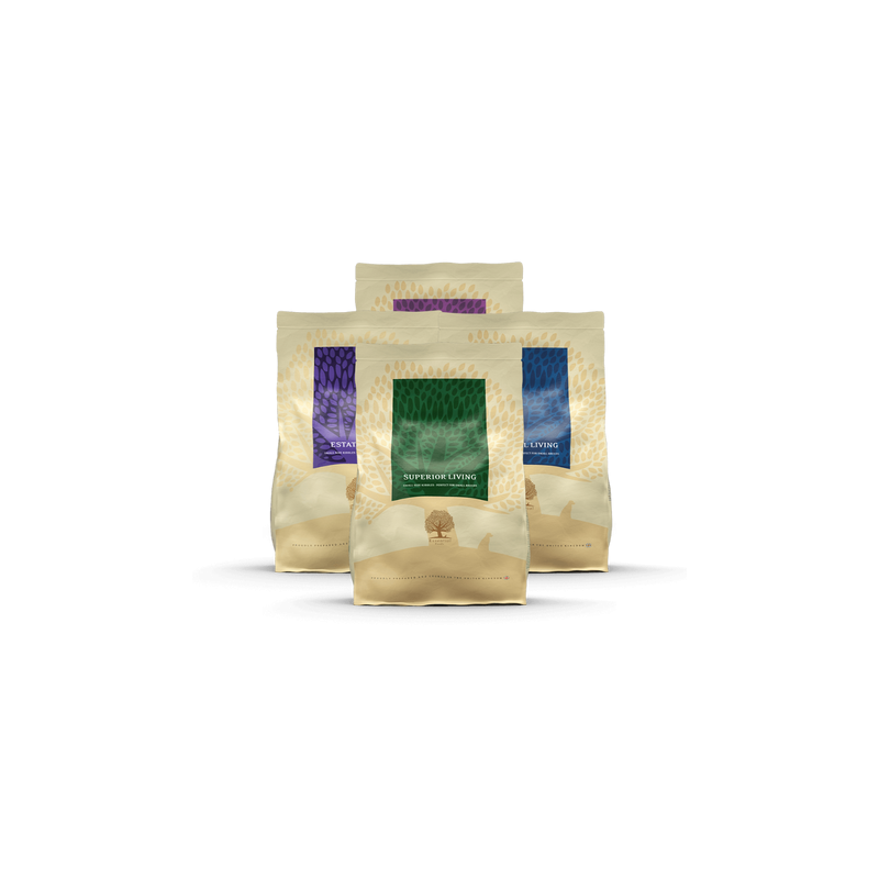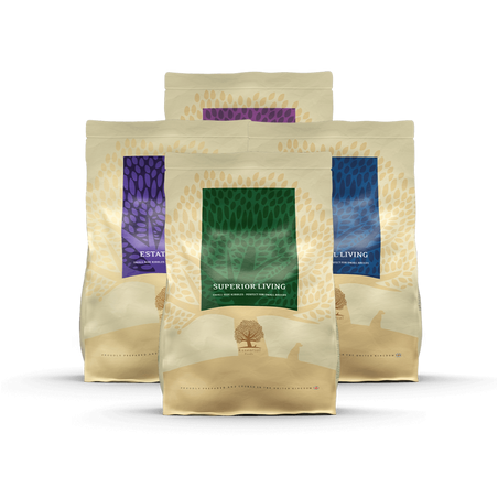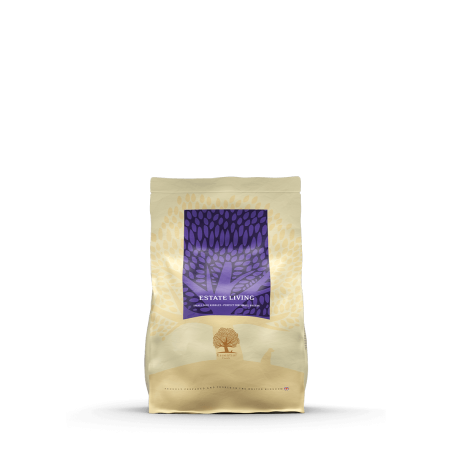 ESTATE LIVING est un repas SANS CEREALES, préparé avec de l’agneau britannique élevé en plein air et de la viande de gibier.