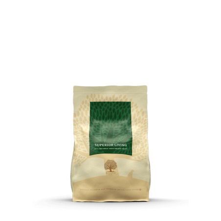 SUPERIOR LIVING est un repas sans céréales préparé avec du poulet, du poisson et du canard frais.