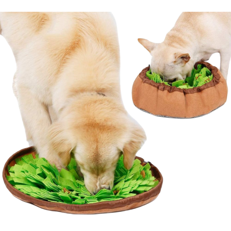 Le tapis de fouille Slow Food est recommandé par la plupart des comportementalistes canins car il aide l’animal à satisfaire son besoin naturel de rechercher de la nourriture. Il est surtout conseillé pour les chiens très actifs ou hyperactifs. Assurez-vous de cacher les délices à différents endroits dans le tapis.