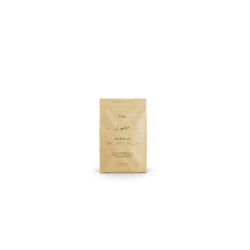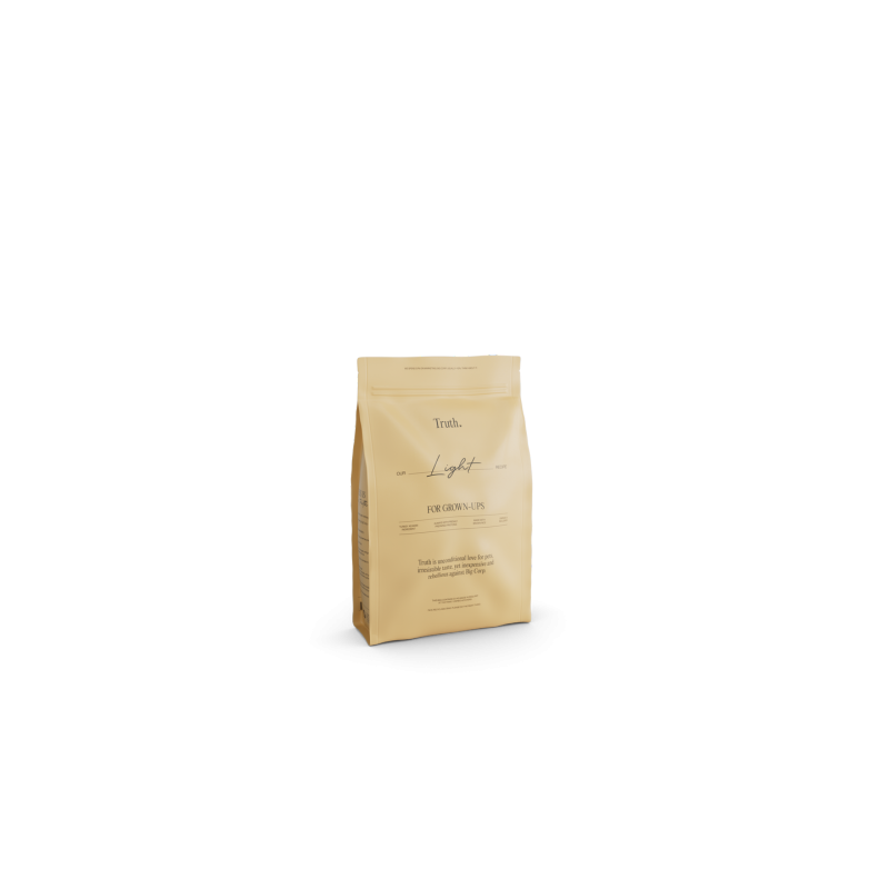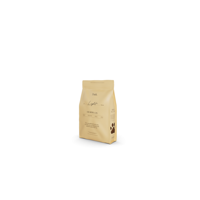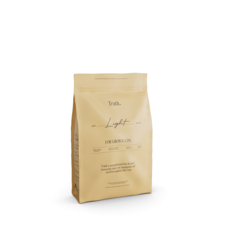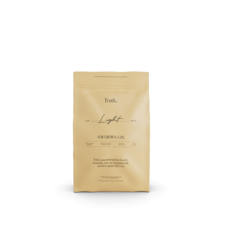 Notre recette TRUTH LIGHT est un repas de qualité à la fois léger et savoureux, destiné spécifiquement pour tout chien ADULTE gourmand à la recherche de son poids de forme.